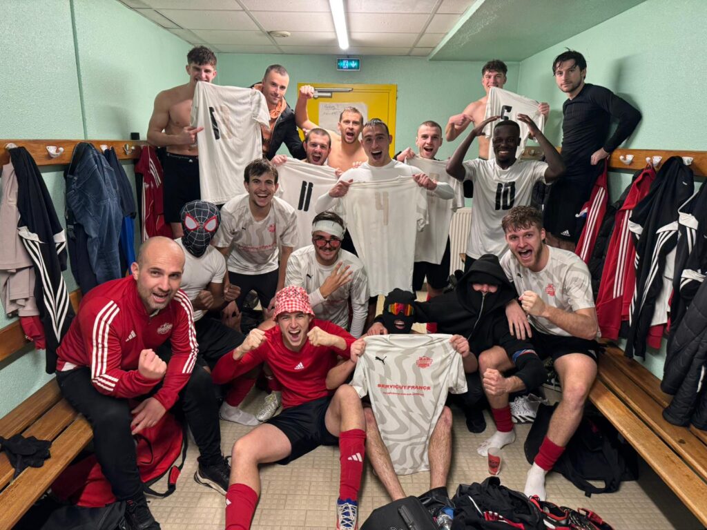 Nous sommes très confiants mais, malheureusement, à l’heure de jeu, suite à une intervention un peu rugueuse, Jordan écope d’un carton rouge qui nous laisse en infériorité numérique… Malgré cela, avec beaucoup de courage et de cœur, nous tenons le score. Mieux : à la 75ème minute, Corentin, d’une magnifique frappe croisée, nous permet de mener ! (2-3)